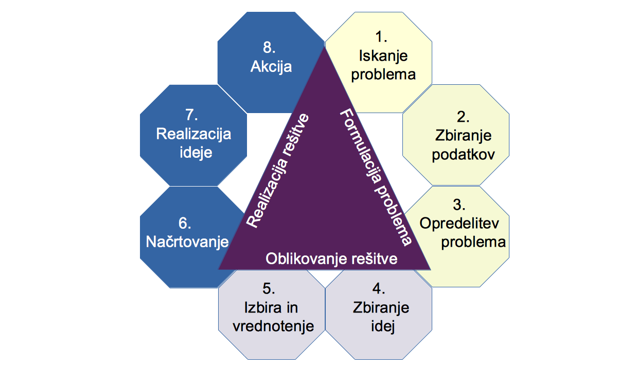 - Iskanje problema – ukvarjanje z iskanjem pravega problema, ki ga bomo reševali, in z oblikovanjem ekipe, ki se bo lotila reševanja ali uresničila idejo.