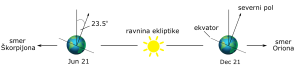 Kot je razvidno iz zgornje slike, za vsako nebesno telo ob vsakem času velja: