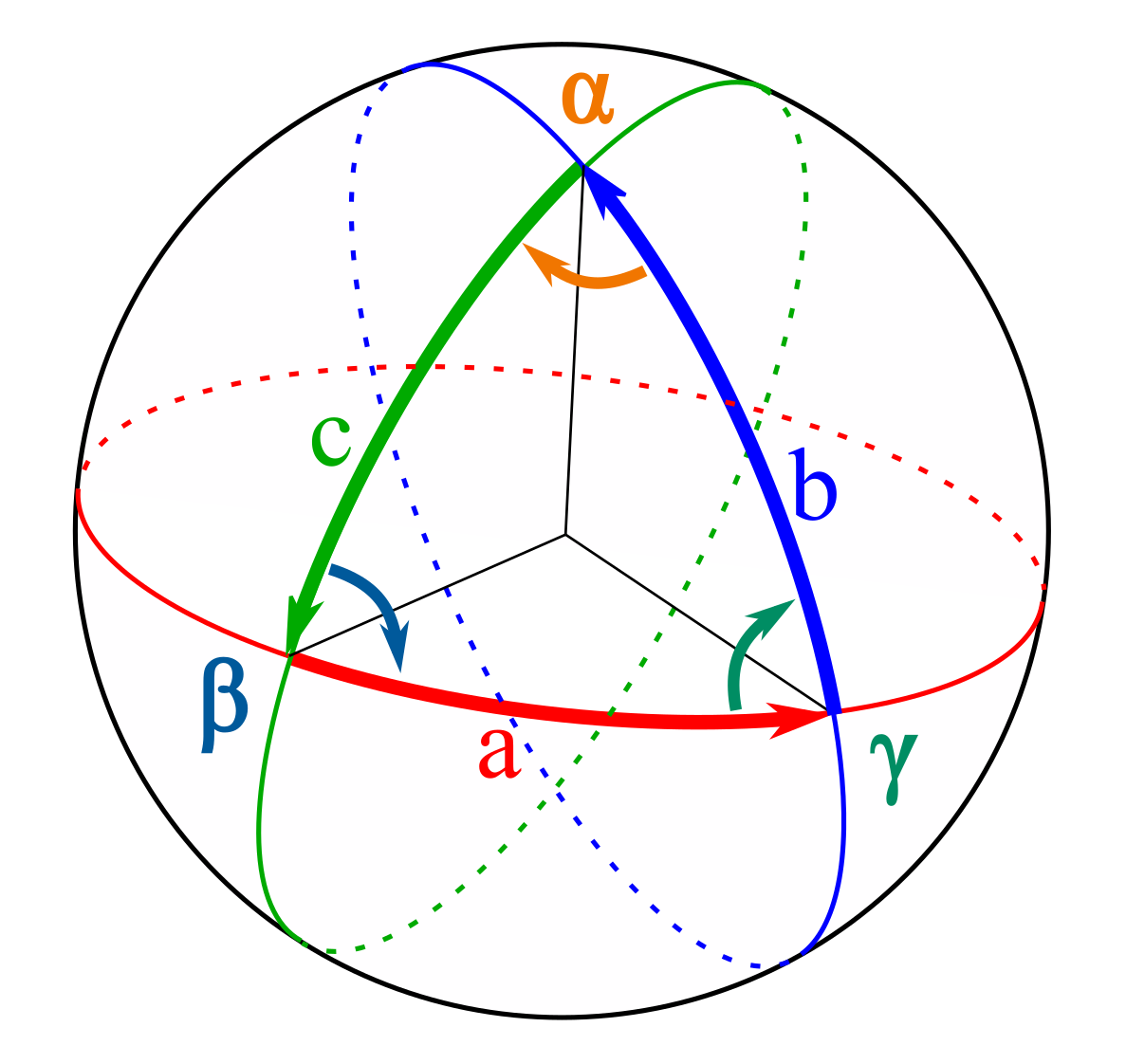 . V nasprotju z ravninskim trikotnikom je vsota vseh kotov sfernega trikotnika